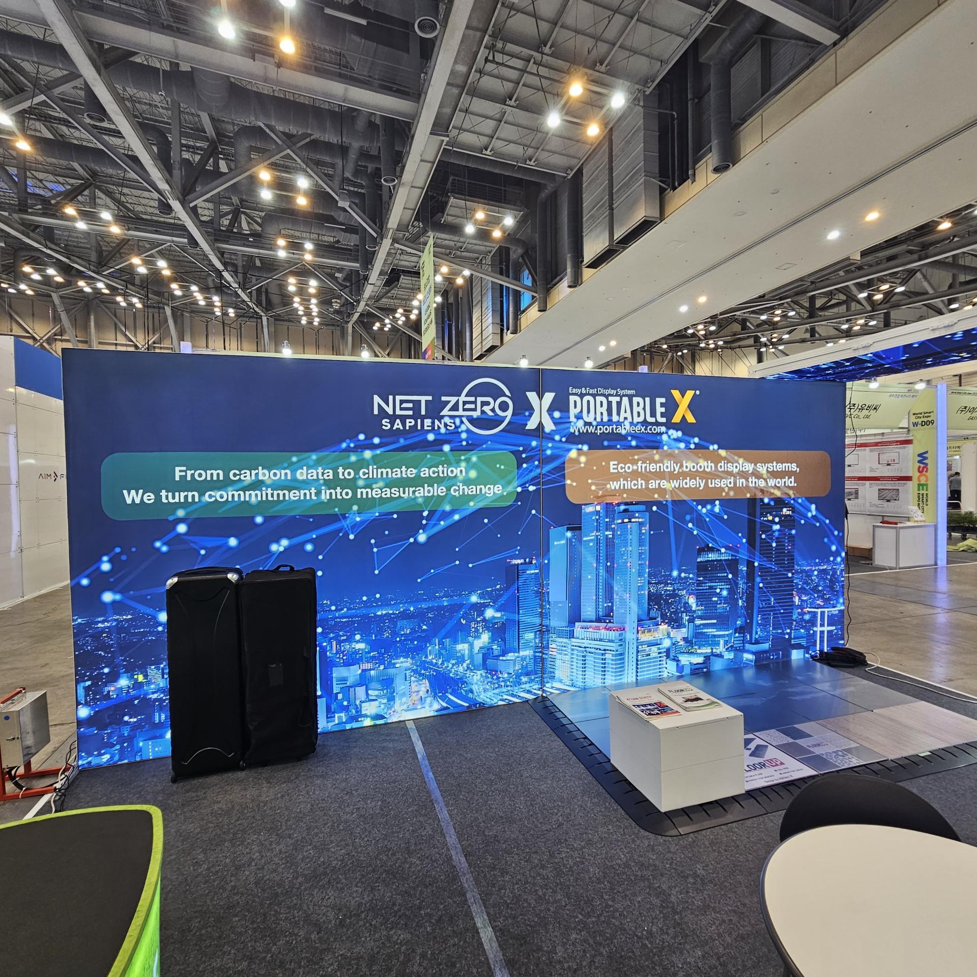 Portable X is an eco-friendly portable display booth display system that can be reused 100% rather than once used and thrown away, drastically reducing the incidental cost of the exhibition booth and reducing industrial waste to minimize carbon emissions.